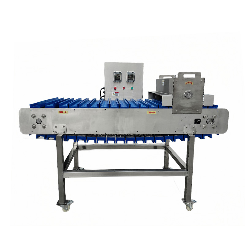 ?本機(jī)采用優(yōu)質(zhì)不銹鋼整體機(jī)身設(shè)計,由刀片、切刀棍、活動擋板組合。用輸送帶進(jìn)料、出料。產(chǎn)品切割整齊,方便操作,能實(shí)現(xiàn)產(chǎn)品快速包裝。