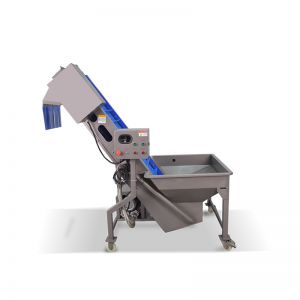 該機(jī)采用食品級PVC刮板出料輸送。預(yù)銑槽設(shè)有氣泡裝置,提高浸泡效果。底部裝有萬向腳輪,輕松移動,使用方便。除電氣、電機(jī)、輸送帶等零件外,機(jī)體均采用食品級不銹鋼材料制造,表面噴砂亞光處理,安全衛(wèi)生。