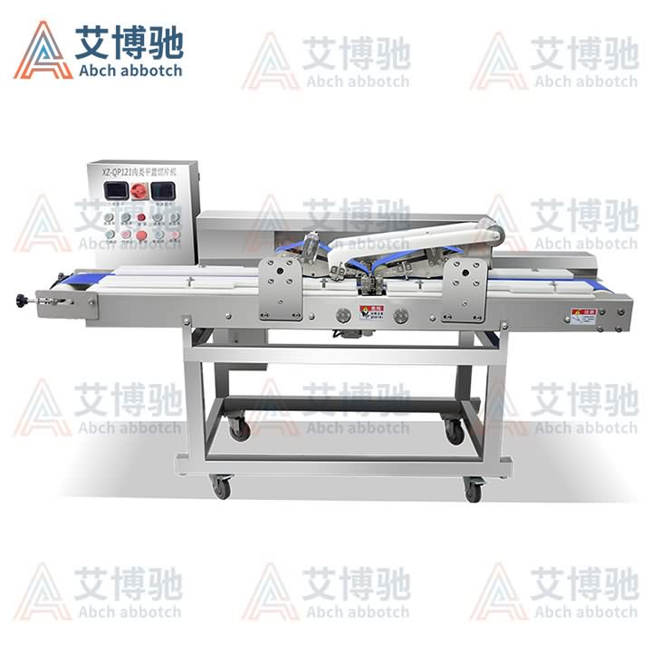 艾博馳ABCH-QP121切片機(jī)是專業(yè)用于鮮品或者熟的無骨雞胸、鴨胸、牛肉、豬肉切片,是對肉的橫向(水平)整肉一次性多片切割,也就是把一塊完整的肉放到機(jī)器的輸送帶上,輸送帶傳送過去后這塊雞胸肉就完全切好了。適合加工里脊肉片,雪花雞柳,無骨雞柳等產(chǎn)品的切片,配上我公司生產(chǎn)的切條機(jī)更省工,省力,提高產(chǎn)量。輸送帶條紋狀,清洗方便,厚度有2mm,可切出均勻的薄肉片,在-20度的條件下,皮帶也正常使用。刀片采用日本進(jìn)口材質(zhì),韌性好,硬度高,使用壽命長,在高頻率運(yùn)動(dòng)工作過程中絕對不會(huì)斷裂,降低了產(chǎn)品的成本。