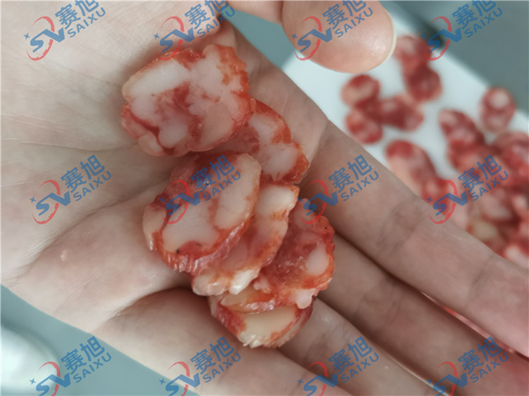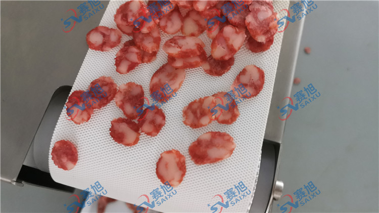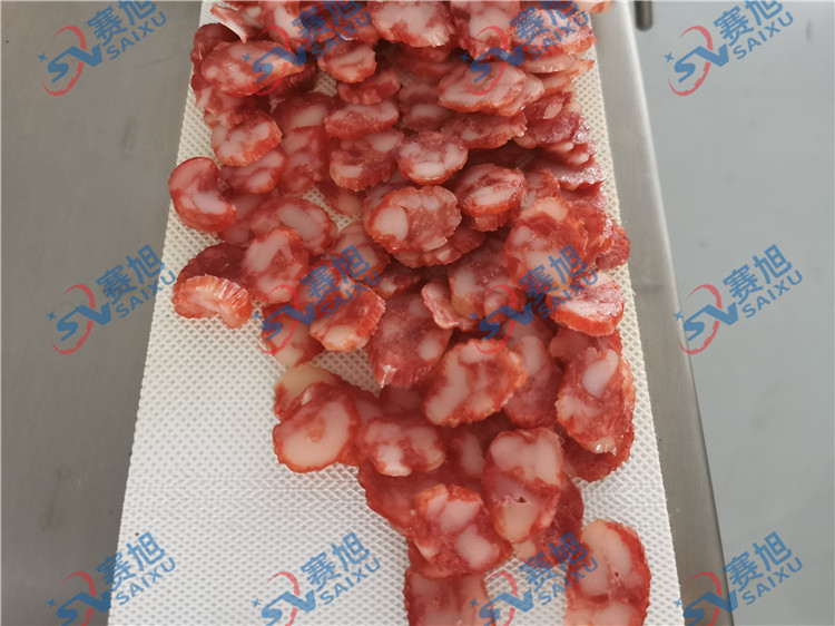 今兒一早,客戶便帶上他的物料“臘腸”來廠試機(jī),《XZQP-120型熟肉切片機(jī)》試機(jī)效果非常漂亮,臘腸厚薄均勻,客戶很滿意,當(dāng)場就購下設(shè)備。看看試機(jī)效果吧!