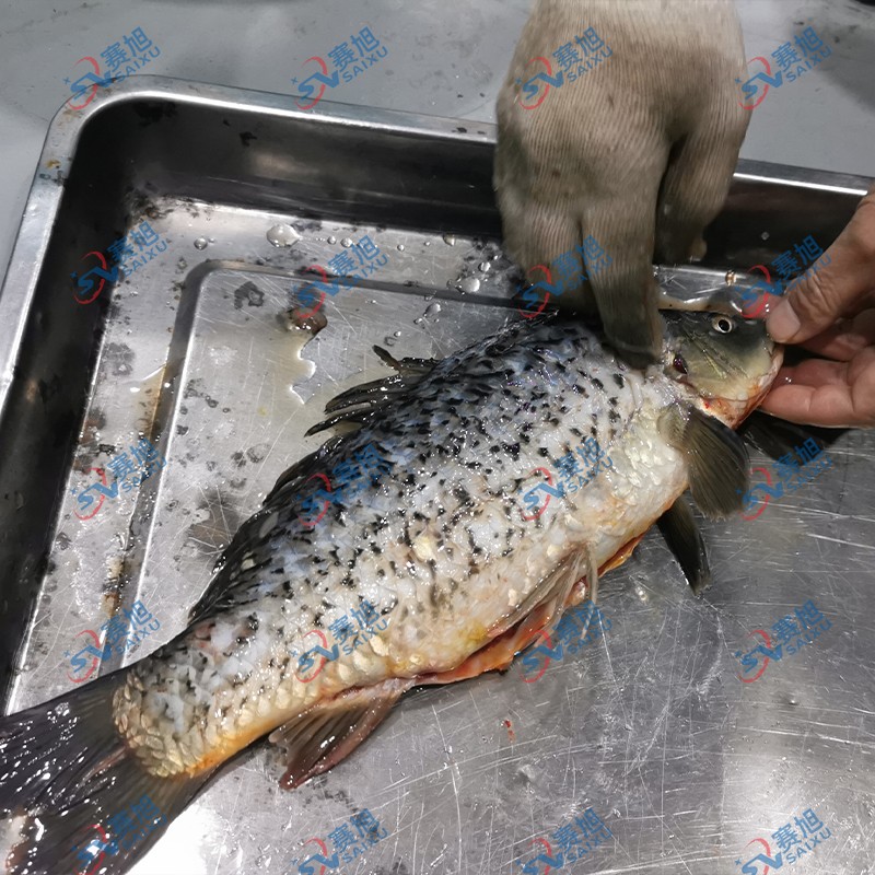 這款殺魚機(jī)的實用性也非常強(qiáng)。在市場上也得認(rèn)可,再也不需要動手殺魚。殺魚效率高,滿足了市場的需求。殺魚機(jī)是水產(chǎn)行業(yè)非常好的幫手。我們機(jī)器的加工對象不分種類不論鯉魚、鳊魚、草魚、花鰱、鯽魚、鰱魚等等還有各種海水魚都可殺,同時不論各種斤都可殺可定制,加工平整,美觀,不撕傷魚肉,不破壞魚膽,加工時間短,效率高,完美代替手工刮鱗,減少人工和受傷隱患。